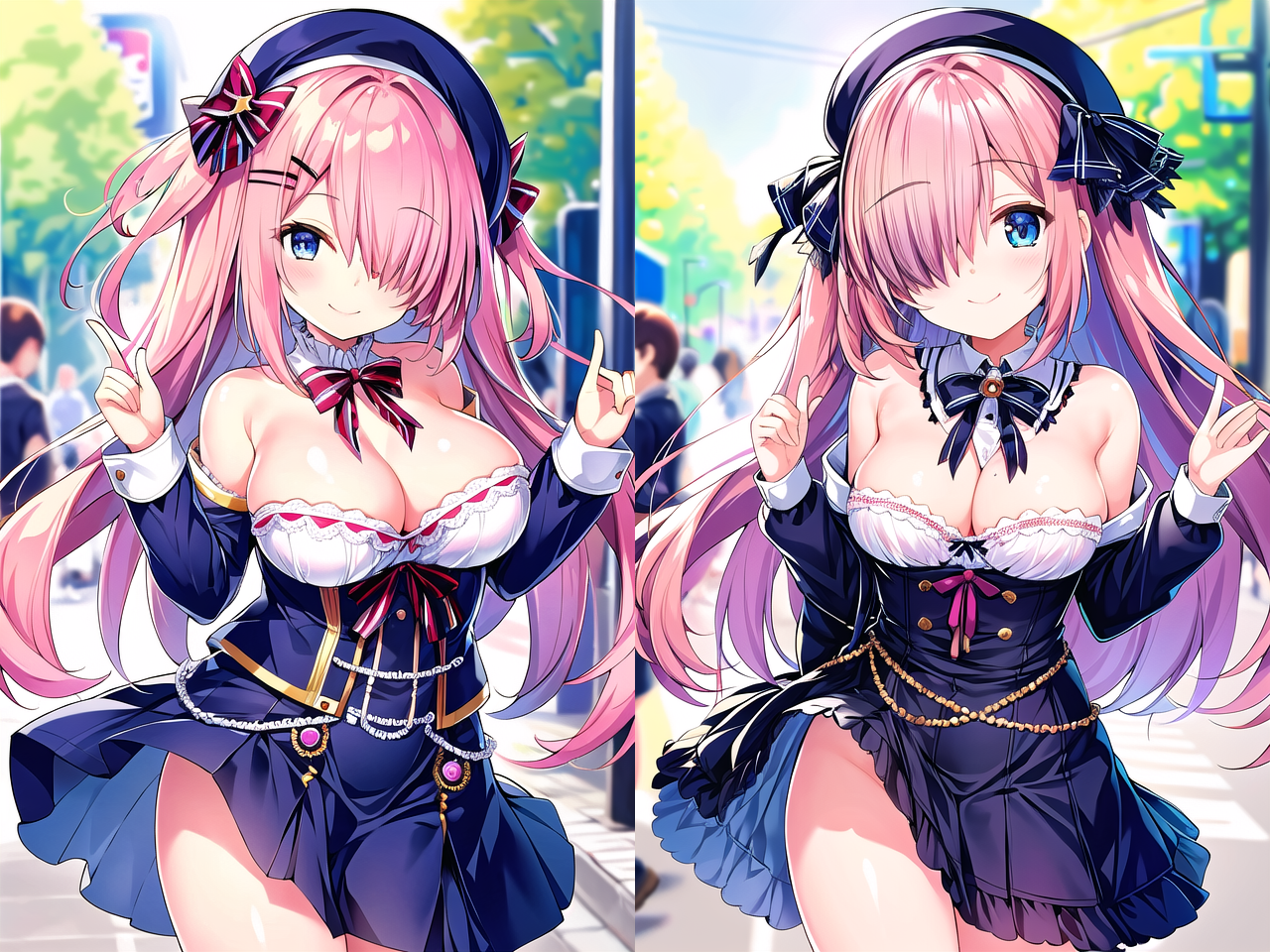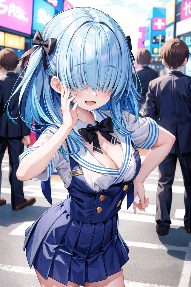 hair over eyesのプロンプトはなるべく付けてください。これが無いと目がうっすら見える状態になることが多いです。