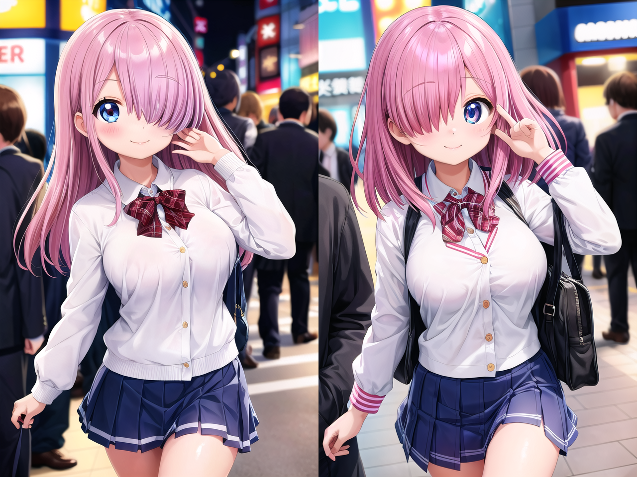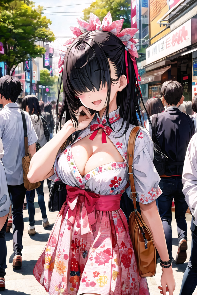 左目隠れにはhair over left eye、右目隠れにはhair over right eyeのプロンプトを付けてください。プロンプトを付けないと成功率が低くなります。