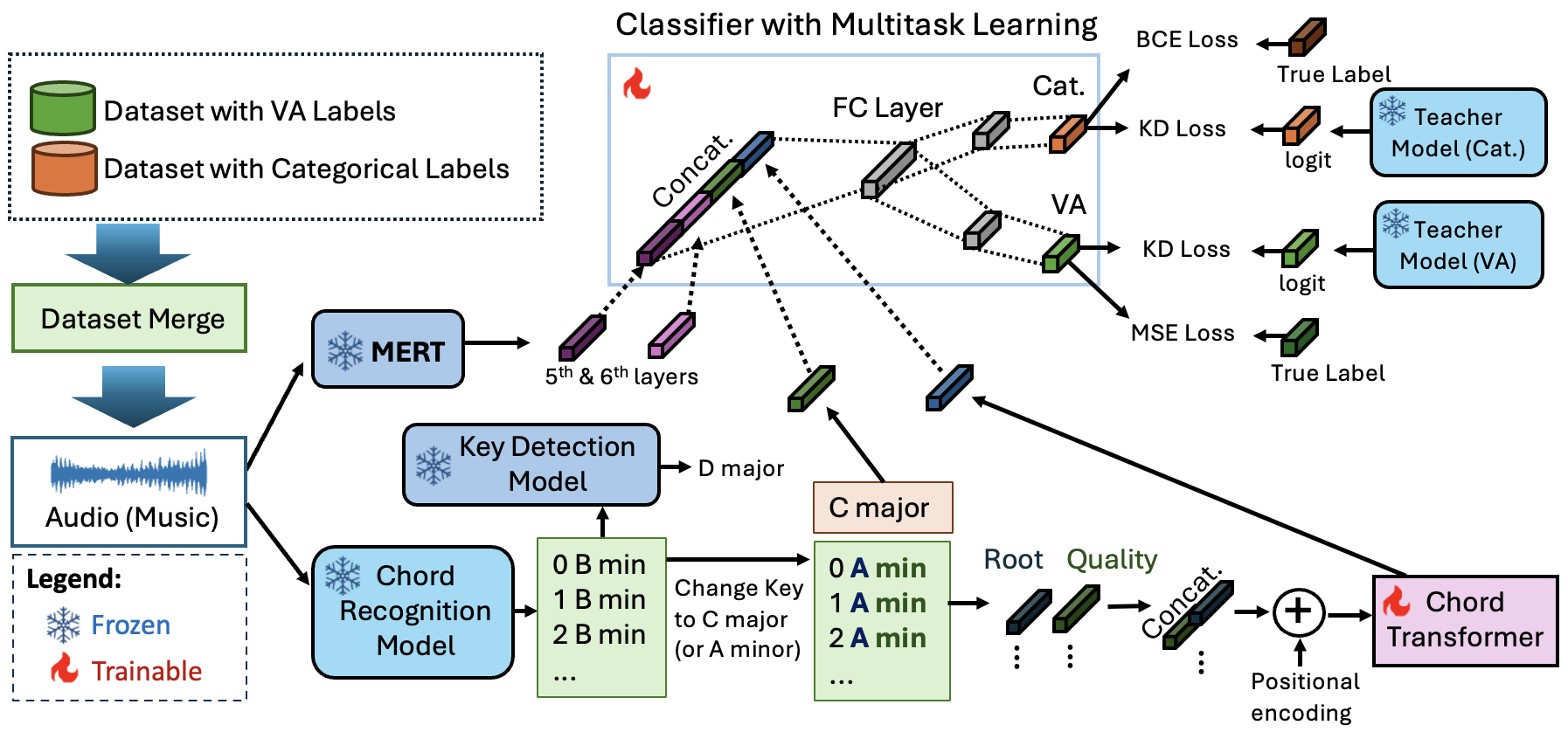 config/: Configuration filesdataset/: Dataset directoriesdataset_loader/: Dataset loading utilitiesutils/: Other utilitiesmodel/linear.py: Fully connected (FC) layer with MERT featureslinear_attn_ck.py: FC layer with MERT and musical features (chord/key)linear_mt_attn_ck.py: Multitask FC layer with MERT and musical features (chord/key)