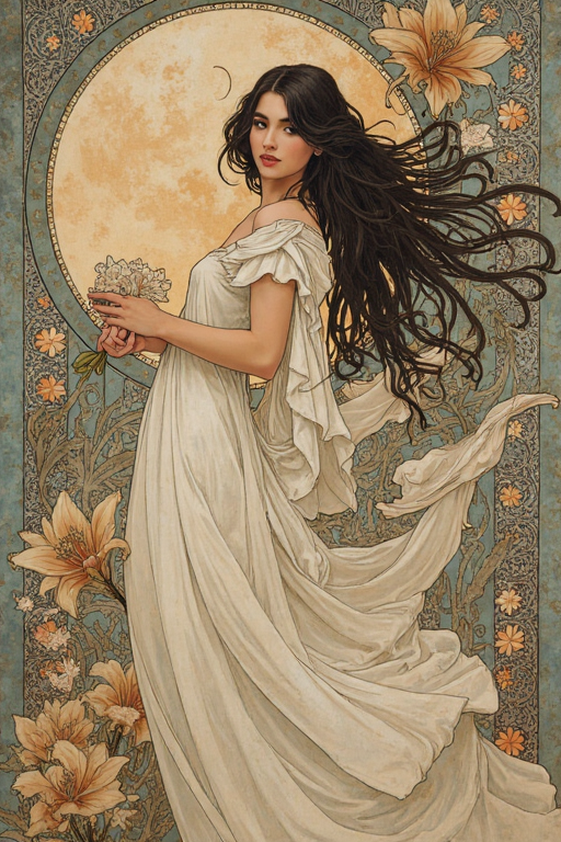 Output Quality: The ultimate measure is the generated art. Here are samples from our QLoRA fine-tuned model on the derekl35/alphonse-mucha-style dataset: