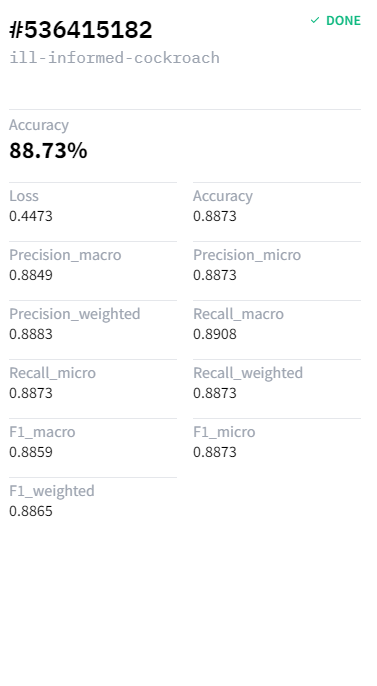 The performance spiked up at the third dataset version. At some point in data labeling, I’ve introduced too much bias to the dataset mistakingly. As we can see its performance becomes more reasonable since the sample variance increased later on. The final model is saved at Google Drive and can be downloaded from here, it is also possible to download via the download_models.py script.