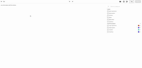In our example, we added two more labels (Other, Multi-label). We also added a named entity recognition (NER) job just to specify how we decided on a label while labeling. The final interface is shown below