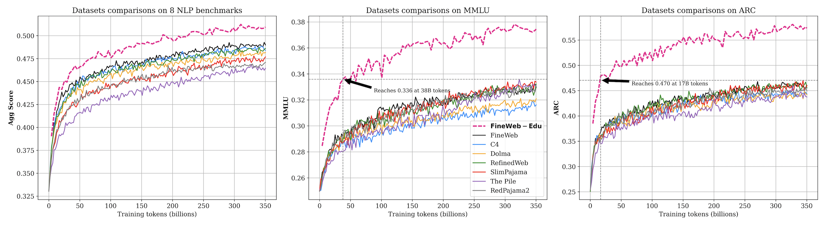 Comparison of FineWeb-Edu to other open web datasets.