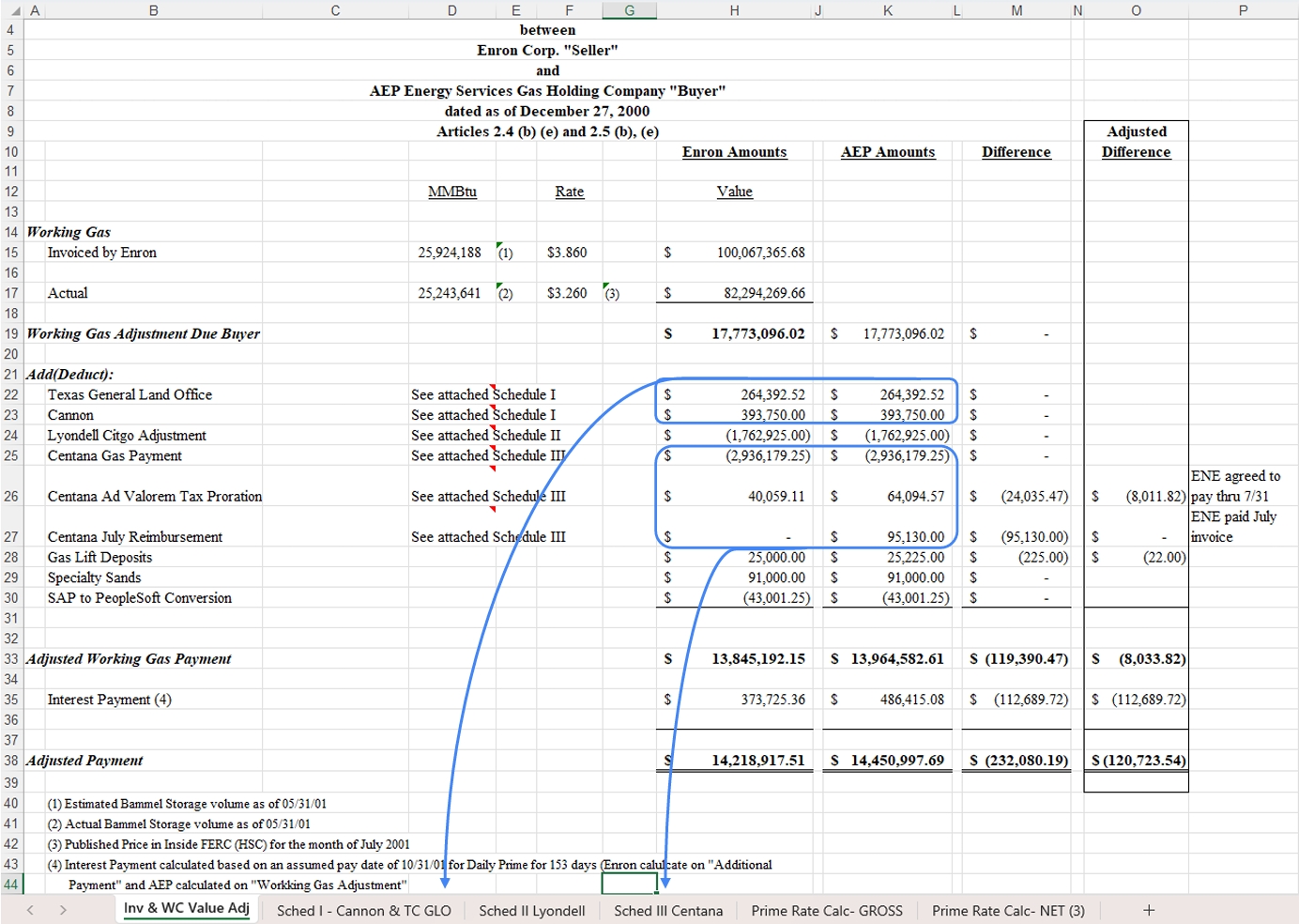 IF NGPL MidContinent index (@ Baker)looks like a daily exposure metric, but the associated formula25 * V21 + C41 * C22actually encodes a 55-day payment timing. Models that prioritize cell values and under-use formulas systematically misinterpret such columns, and the error propagates through subsequent steps.Multimodal, cross-artifact reasoning. Many workflows combine spreadsheets with PDFs, charts, Word documents, and screenshots, requiring the agent to jointly reason over heterogeneous formats. Tables embedded in PDFs, for instance, are often only partially referenced, with key entries missing from the text channel.