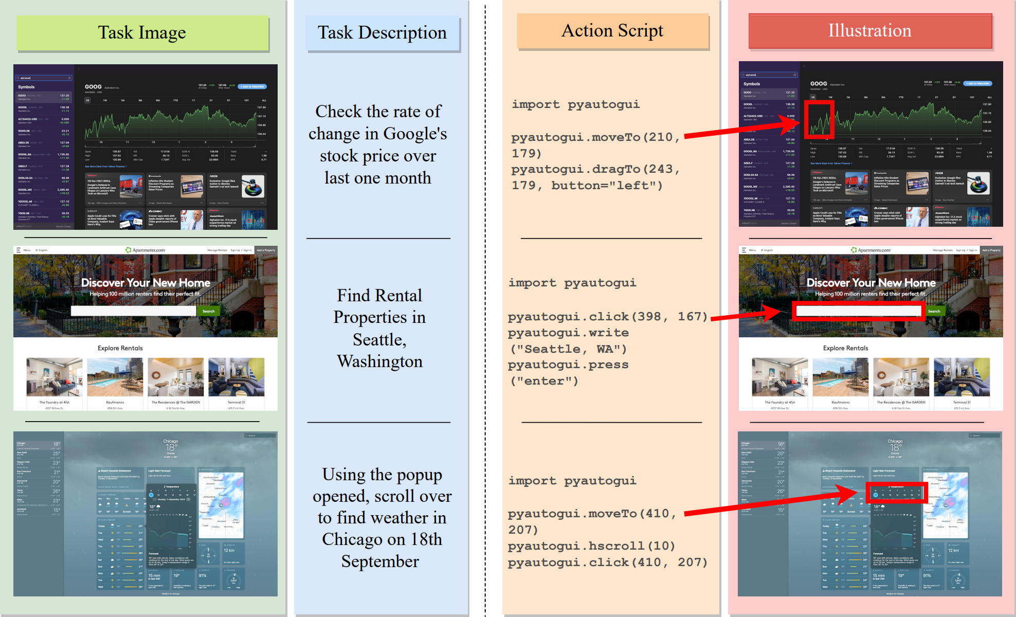 task - contains natural language description ("Task") along with the corresponding PyAutoGUI code ("Output Script"):Task: Navigate to see the upcoming titles