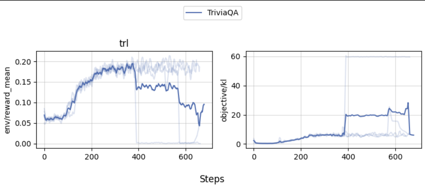 In the ToolFormer paper, it shows an interesting use case that utilizes a Wikipedia Search tool to help answer questions. In this section, we attempt to perform similar experiments but uses RL instead to teach the model to use a wiki tool on the TriviaQA dataset.