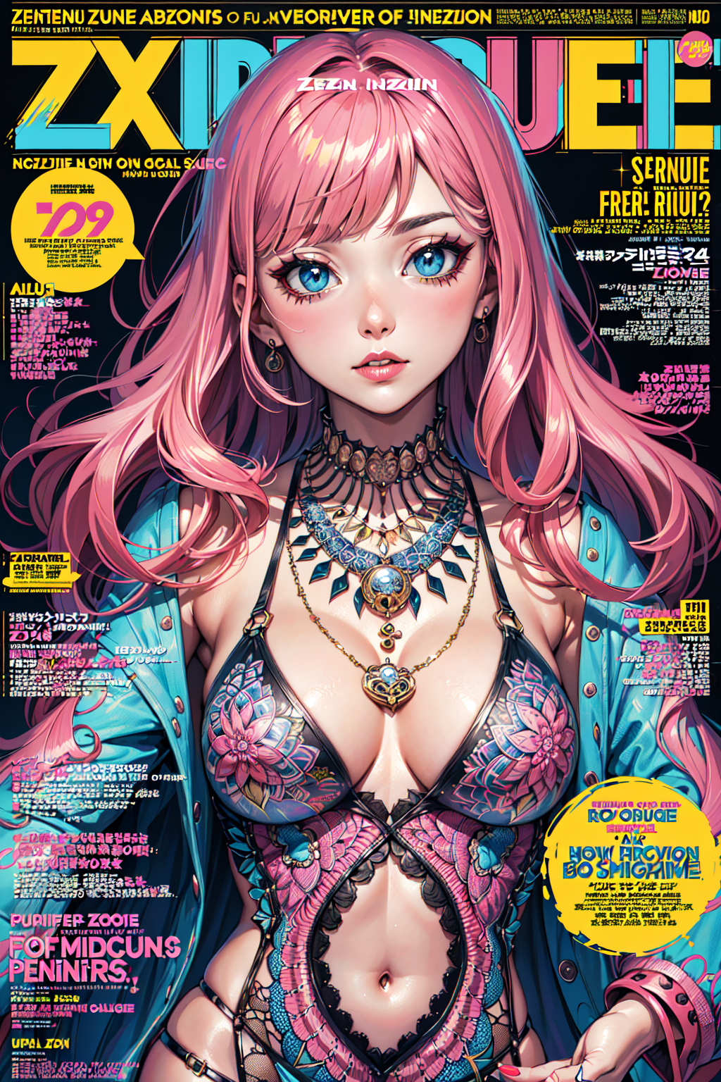 1gir, artist style, (Fashion Magazine Cover:1.5), (zentangle:1.3), material effects,